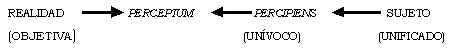 2 Percipiens y perceptum, son términos tomados de la escolástica -filosofía que procede del vocablo "scholasticus", el que enseña en la escuela. Suele situarse como continuación de la patrística no sólo desde el punto de vista religioso sino aún por la tradición filosófica heredada de los griegos, razón a la que se une la verdad religiosa, particularmente la católica. Escolástica, connota así particularmente nuestra herencia cultural. En este marco percipiens equivale a quien percibe, y perceptum al objeto a percibir